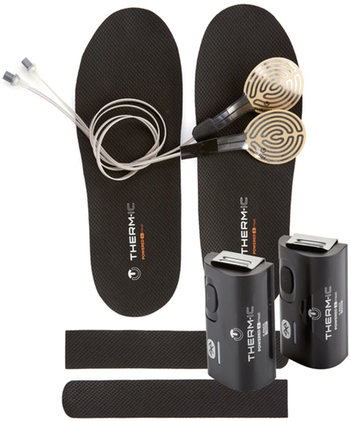 The ultra-thin heating elements adhere to your insoles and connect directly to the C-Pack batteries. Once installed, you can control the heat manually using the power button or adjust settings remotely using the Therm-ic Heat Control app. Perfect for ski boots, hiking footwear, or everyday shoes. (Note: Batteries must be attached to the shoe or boot.)